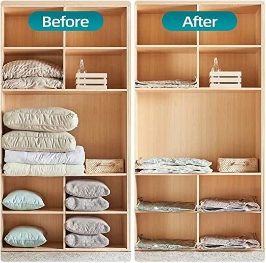 - 1.Impressive Space Saver: Homigo Smart Vacuum Storage Bags are good space saver for cloths for your closets, wardrobes, basements, traveler bags. Store at anyplace inside your house or get with you in traveling as well. Your stuffs will be safe inside these bags, Don’t Worry about that.
