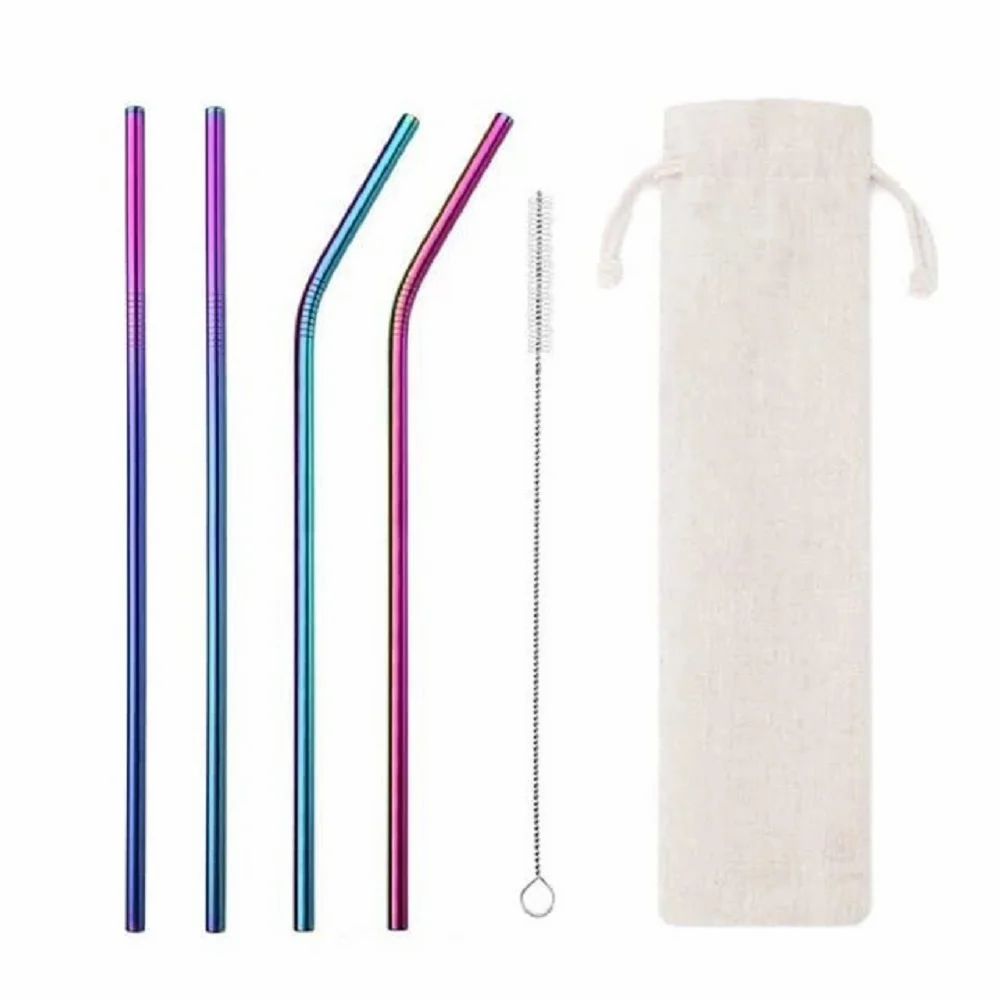 Stainless Steel Raimbo Straw 2 Straight 2 Bent 1 Brush